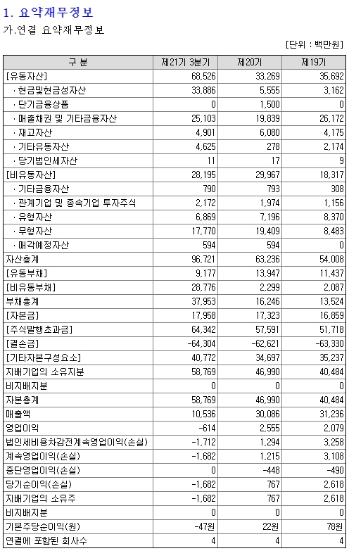 (20년 4분기 실적 발표를 아직 하지 않아 3분기 실적 보겠습니다.)