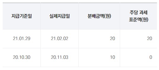 위의 자료는 현재까지의 분배금 현황입니다.
