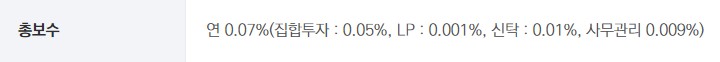 (집합투자 : 0.05%, LP : 0.001%, 신탁 : 0.01%, 사무관리 : 0.009%로 총 0.07%입니다.)